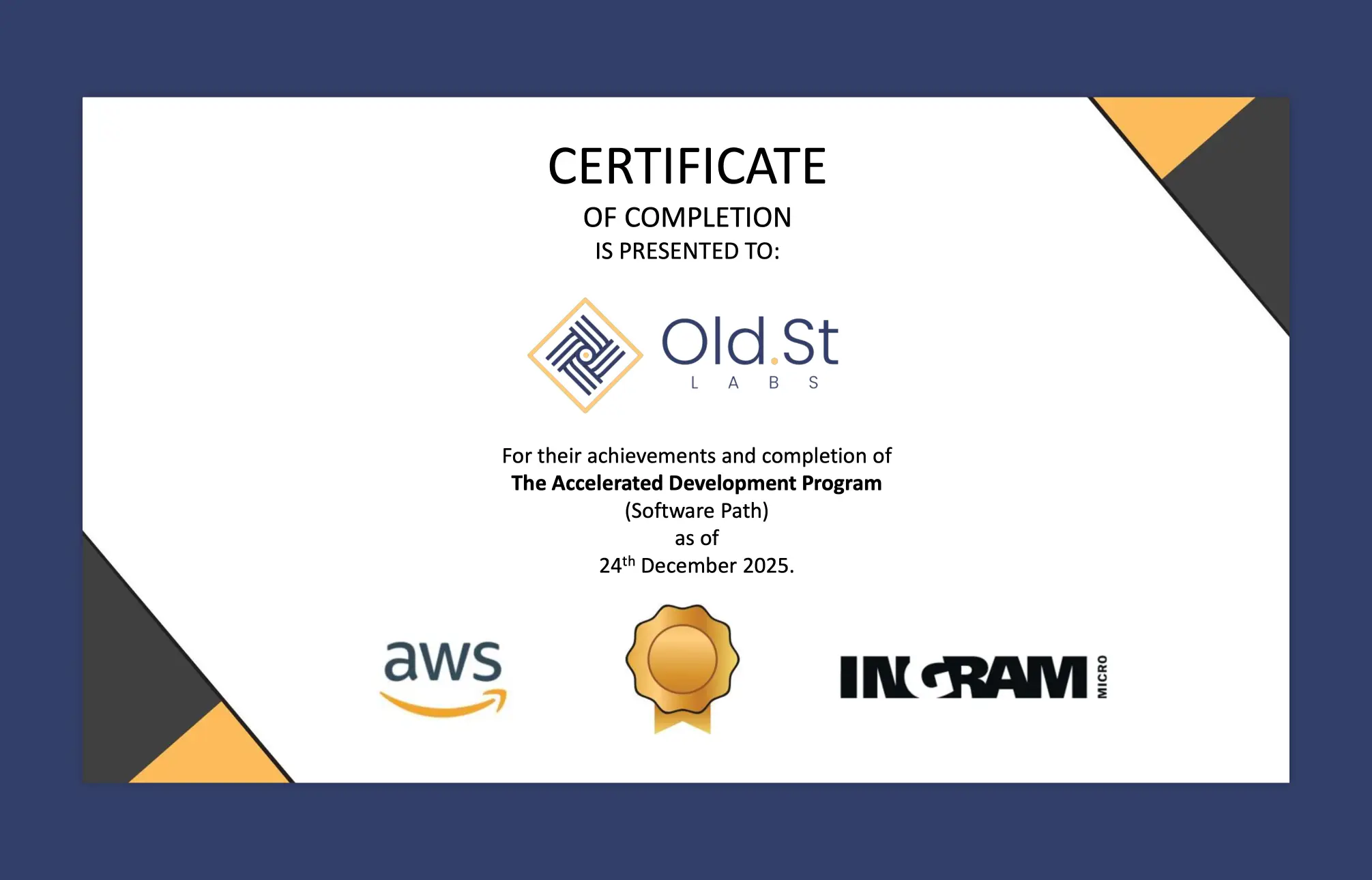 London, UK - February 12, 2025 — Old St Labs is proud to announce its graduation from the Amazon Web Services (AWS) Accelerated Development Program (Software Path). This milestone, officially completed as of 24th December 2025, elevates Old St Labs to Select Level Partner status within the AWS Partner Network.